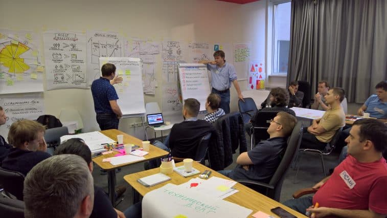 Сначала мы сделали несколько тренингов у нас в офисе. Сразу стало понятно, что мы нащупали что-то полезное, после чего провели масштабную операцию: пригласили наших ребят из Краснодара в Москву, сняли им жилье на месяц, поместили в наш офис и стали все вместе работать. Начался период интенсивного перехода от «самопального» Scrum, к тому, который рекомендуют лучшие «скрамоводы». Сперва было тяжело. Сопротивления не было, но было недоумение: казалось, это какие-то бессмысленные ритуалы, которые не ясно зачем соблюдать. А зачем эта ретроспектива в каждой команде? А что мы должны здесь делать? А почему так? Потом, когда стали видны результаты, возникло облегчение.