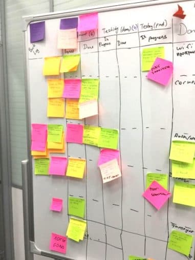 Менеджеры после обучения возглавили команды в роли процесс-мастеров. Запуск пяти основных команд прошел при участии Сергея Баранова и занял 3 месяца. Совместно с Сергеем мы обсуждали наиболее подходящие инструменты, пробовали разные механики. Начали с классического скрам-борда и бумажных карточек, внедрили стендап-митинги и ретроспективы.