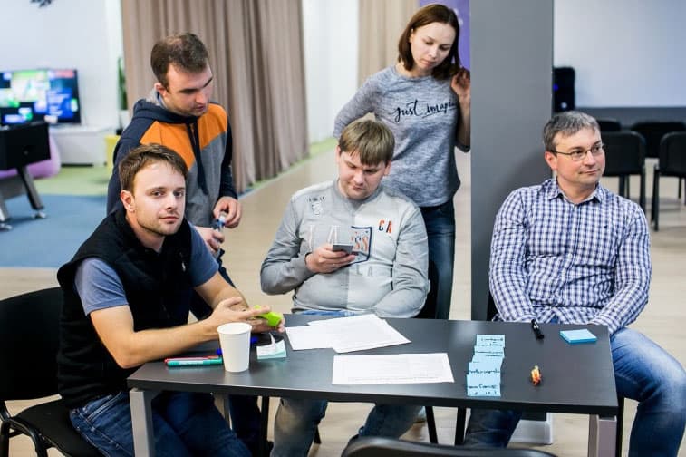Сначала Сергей Баранов провёл двухдневный тренинг по Scrum и Kanban для всех тимлидов и проектных менеджеров, которые в дальнейшем стали владельцами продуктов. На следующем этапе, когда мы переходили на SAFe, в аналогичном воркшопе Сергея Рогачева участвовали не только люди из разработки и продуктовых команд, но и руководители бизнес-подразделений, которые специально прилетели из Лос-Анджелеса.